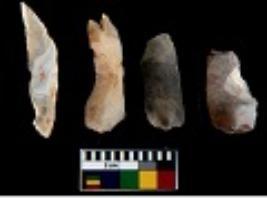 | Description / विवरण | There are n 4 utilized flake cores. There are multi directional irregular scar pattern on them. Two are tapering at one end and two have sharp edges. |