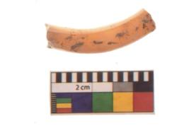 | Description / विवरण | Fragment of a shell bangle, roughly squarish in section and bearing incised line on the surface. |