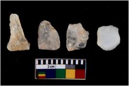 | Description / विवरण | There are n 4 utilized flake cores. One is tapering at one end and three have blunted edges. |