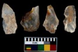 | Description / विवरण | There are n 4 utilized flake cores. There are multi directional irregular scar pattern on them. Three are tapering at one end and one has sharp edge. |