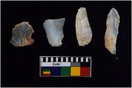| Description / विवरण | There are n 4 flakes tool; there are large flakes with sides trimmed, Marks of secondary flaking are present on the both the faces. The dorsal is relatively flat. |
