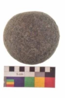 | Description / विवरण | Specimen of a round hammerstone with smooth texture. It has dark brown in colour. |