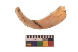 | Description / विवरण | Fragment of a shell bangle, roughly squarish in section and bearing incised line on the surface. |
