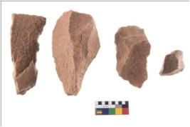 | Description / विवरण | There are n 4 cores. There are multi directional irregular scar pattern on both dorsal and ventral face of the cores. Some have blunted edges and some have round edges. |