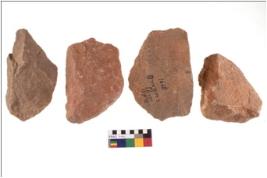 | Description / विवरण | There are n 4 utilized flake cores. There are multidirectional irregular scar pattern on both dorsal and ventral face of the flake cores. One has sharp edges and three have blunted edges. |