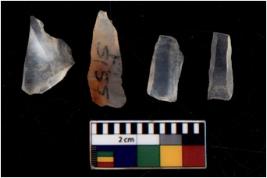 | Description / विवरण | There are n 4 Flake tool; There are multidirectional irregular scar pattern on them. few have blunt edges, Some of them are |