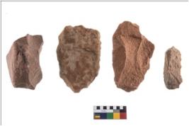 | Description / विवरण | There are n 4 cores. There are multi directional irregular scar pattern on both dorsal and ventral face of the cores. Some have blunted edges and some have round edges. |