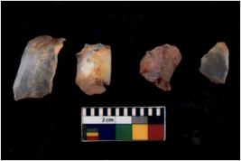 | Description / विवरण | There are n 4 flakes tool; there are flakes with sides trimmed, Marks of secondary flaking are present on the both the faces.The dorsal is relatively flat. |