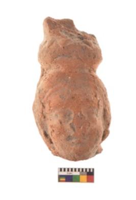 | Description / विवरण | Specimen of a partially broken mask depicting a human face, the facial features show big and protruding eyes, Short nose and thick lips,ears are prominent and flaking, the knob on the forehead is intact, it might be a decorative knob. There is a lime coating all over, and traces of red painting. |