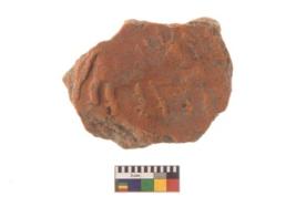 | Description / विवरण | Specimen of a potsherd with decorative bull design, It is look like a seal. |