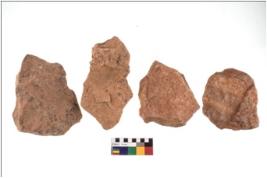 | Description / विवरण | Specimen of flake tools with prominent flaking marks. They are made up of a short flakes with sides trimmed. |