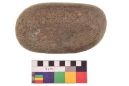 | Description / विवरण | Specimen of an uneven shaped grinding stone. It is brownish in colour and smooth in texture. It has flat base. |