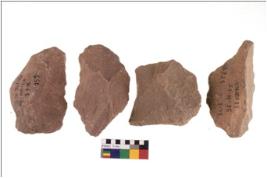 | Description / विवरण | Specimen of flake tools with prominent flaking marks. They are made up of a short flakes with sides trimmed. |
