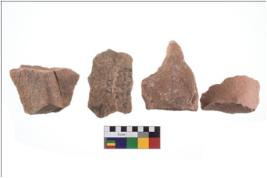 | Description / विवरण | There are n-4 of utilized flake cores. There are multidirectional irregular dominant scar pattern on both dorsal and ventral face of the cores. |