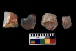 | Description / विवरण | There are n 4 flakes tool; there are flakes with sides trimmed, Marks of secondary flaking are present on the both the faces.The dorsal is relatively flat. |
