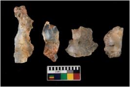 | Description / विवरण | There are n -4 of utilized worked cores. There are multidirectional irregular scar pattern and have sharp edges. Two have a broken tip. |
