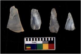 | Description / विवरण | There are n 4 Flake tool; There are multidirectional irregular scar pattern on them. few have blunt edges, Some of them are |