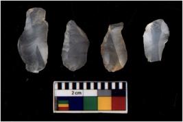 | Description / विवरण | There are n 4 flakes tool; there are flakes with sides trimmed, Marks of secondary flaking are present on the both the faces.The dorsal is relatively flat. |