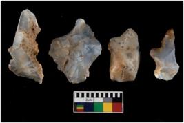 | Description / विवरण | There are n 4 of utilized worked cores and show multidirectional irregular scar pattern. They have sharp edges. |
