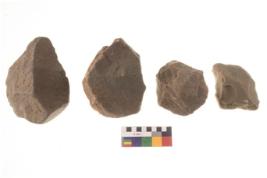 | Description / विवरण | There are n 4 flakes tool; there are large flakes with sides trimmed, Marks of secondary flaking are present on the both the faces. The dorsal is relatively flat. |