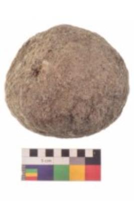 | Description / विवरण | Specimen of a roughly round shaped hammerstone with smooth texture. It is brownish in colour and round in cross section. |