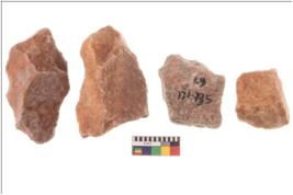 | Description / विवरण | There are n 4 utilized flake cores. There are multidirectional irregular scar pattern on both dorsal and ventral face of the flake cores. One has sharp edges and three have blunted edges. |