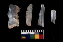 | Description / विवरण | There are n 4 flakes tool; there are large flakes with sides trimmed, Marks of secondary flaking are present on the both the faces. |