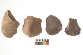 | Description / विवरण | There are n 4 flakes tool; there are triangular flake tool having flat thick body and deep long flake scar is seen on the upper side. It has flat thick bottom and pointed functional top. |