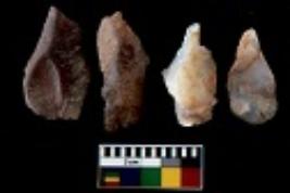 | Description / विवरण | There are n 4 utilized flake cores. There are multi directional irregular scar pattern on them. All of them are tapering at one end. |