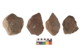 | Description / विवरण | There are n 4 flakes tool; there are triangular flake tool having flat thick body and deep long flake scar is seen on the upper side. It has flat thick bottom and pointed functional top. |