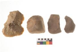 | Description / विवरण | There are n 4 flakes tool; there are large flakes with sides trimmed, Marks of secondary flaking are present on the both the faces. The dorsal is relatively flat. |