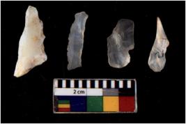 | Description / विवरण | There are n 4 flakes tool; there are flakes with sides trimmed, Marks of secondary flaking are present on the both the faces.The dorsal is relatively flat. |