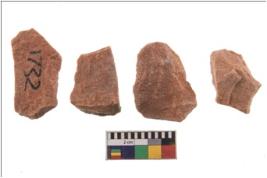 | Description / विवरण | There are n 4 utilized flake cores. There are multidirectional irregular scar pattern on both dorsal and ventral face of the flake cores. One has sharp edges and three have blunted edges. |