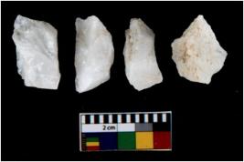 | Description / विवरण | There are n 4 utilized flake cores. Two have blunted edges and two have round edges. |