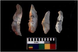 | Description / विवरण | There are n 4 flakes tool; there are large flakes with sides trimmed, Marks of secondary flaking are present on the both the faces. |