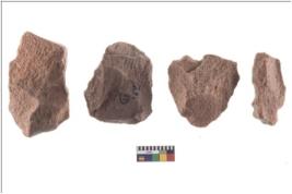| Description / विवरण | There are n 4 cores. There are multi directional irregular scar pattern on both dorsal and ventral face of the cores. Some have blunted edges and some have round edges. |