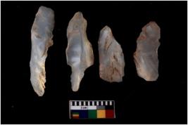 | Description / विवरण | There are n 4 Flake tool; There are multidirectional irregular scar pattern on them. few have blunt edges, Some of them are tapering at one end. |