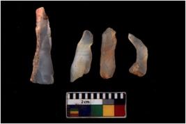 | Description / विवरण | There are n 4 Flake tool; There are multidirectional irregular scar pattern on them. few have blunt edges, Some of them are tapering at one end. |