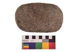 | Description / विवरण | Specimen of an uneven shaped grinding stone. It is brownish in colour and smooth in texture. It has flat base. |
