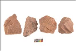 | Description / विवरण | Specimen of flake tools with prominent flaking marks. They are made up of a short flakes with sides trimmed. |