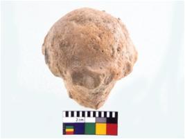 | Description / विवरण | Terracotta stopper with tapering end and circular cap on top , ill fired |