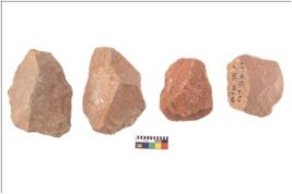 | Description / विवरण | There are n 4 utilized flake cores. There are multidirectional irregular scar pattern on both dorsal and ventral face of the flake cores. One has sharp edges and three have blunted edges. |