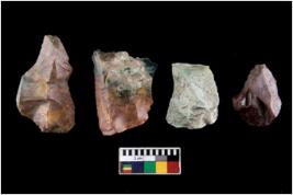 | Description / विवरण | There are n 4 of utilized worked cores and show scar pattern. Two are tapering at one end. |