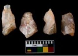 | Description / विवरण | There are n 4 utilized flake cores. There are multi directional irregular scar pattern on them. Three are tapering at one end and one has sharp edge. |