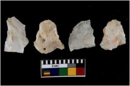 | Description / विवरण | There are n 4 utilized flake cores. Two have blunted edges and two have round edges. |