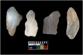 | Description / विवरण | There are n 4 flakes tool; there are flakes tool with prominent flaking marks. It made up of a large flakes with sides trimmed. It is rectangular in shaped. |