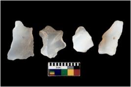 | Description / विवरण | There are n 4 flakes tool; there are flakes tool with prominent flaking marks. It made up of a large flakes with sides trimmed. It is rectangular in shaped. |