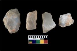 | Description / विवरण | There are n 4 flakes tool; there are large flakes with sides trimmed, Marks of secondary flaking are present on the both the faces. The dorsal is relatively flat. One is pointed functional top. |