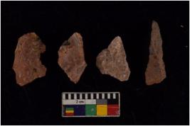 | Description / विवरण | There are n 4 of utilized worked Cores and show multidirectional irregular scar pattern on both dorsal and ventral sides. |