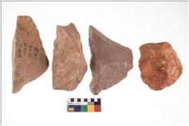 | Description / विवरण | There are n-4 of utilized flake cores. There are multidirectional irregular dominant scar pattern on both dorsal and ventral face of the cores. |